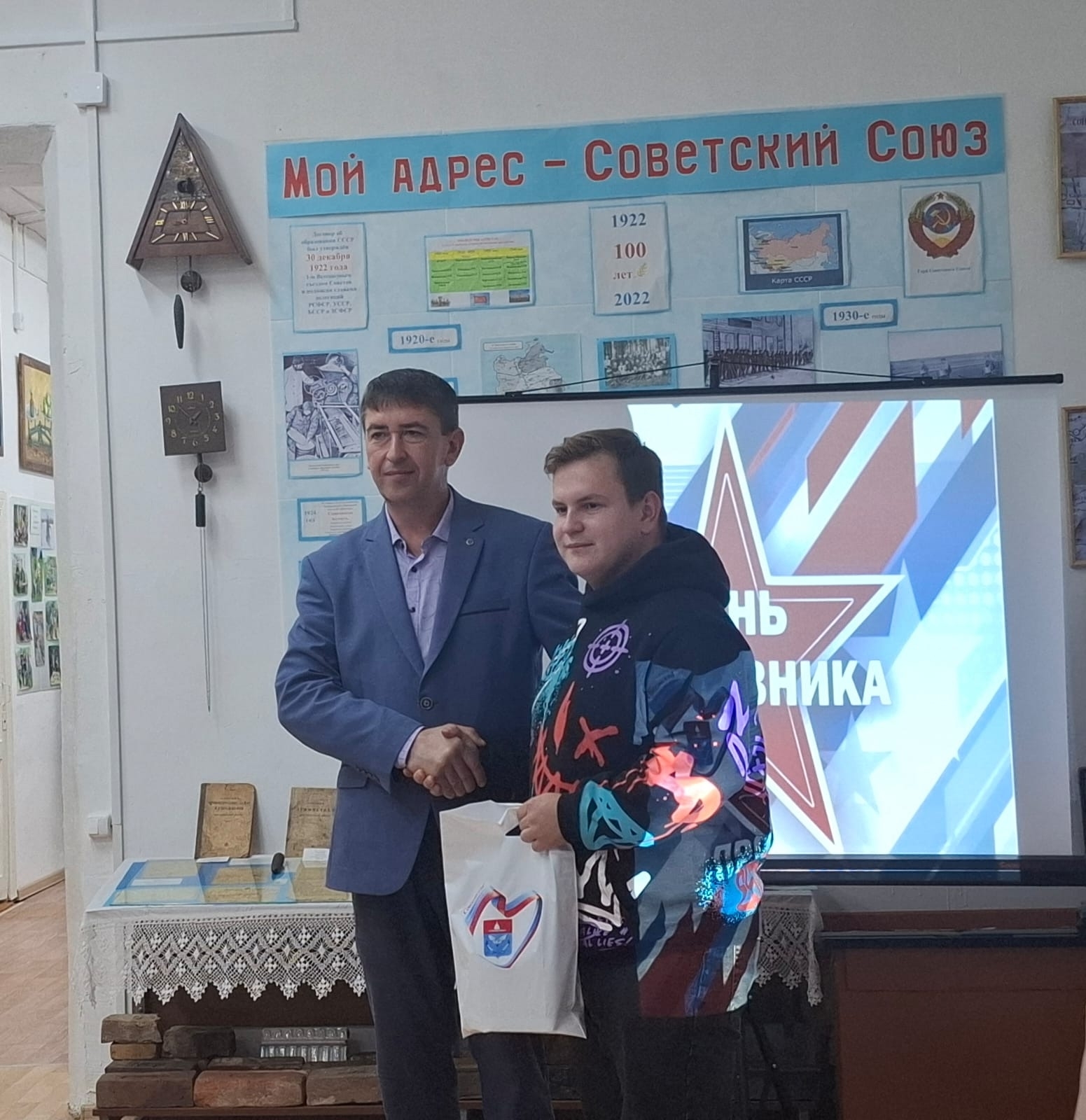 Трое молодых людей из Сонковского муниципального округа отправятся на службу в армию в осенний призыв-2025. В честь этого важного события в краеведческом центре поселка прошло торжественное мероприятие, посвященное Дню призывника на котором присутствовал новобранец Н.А. Теленков.